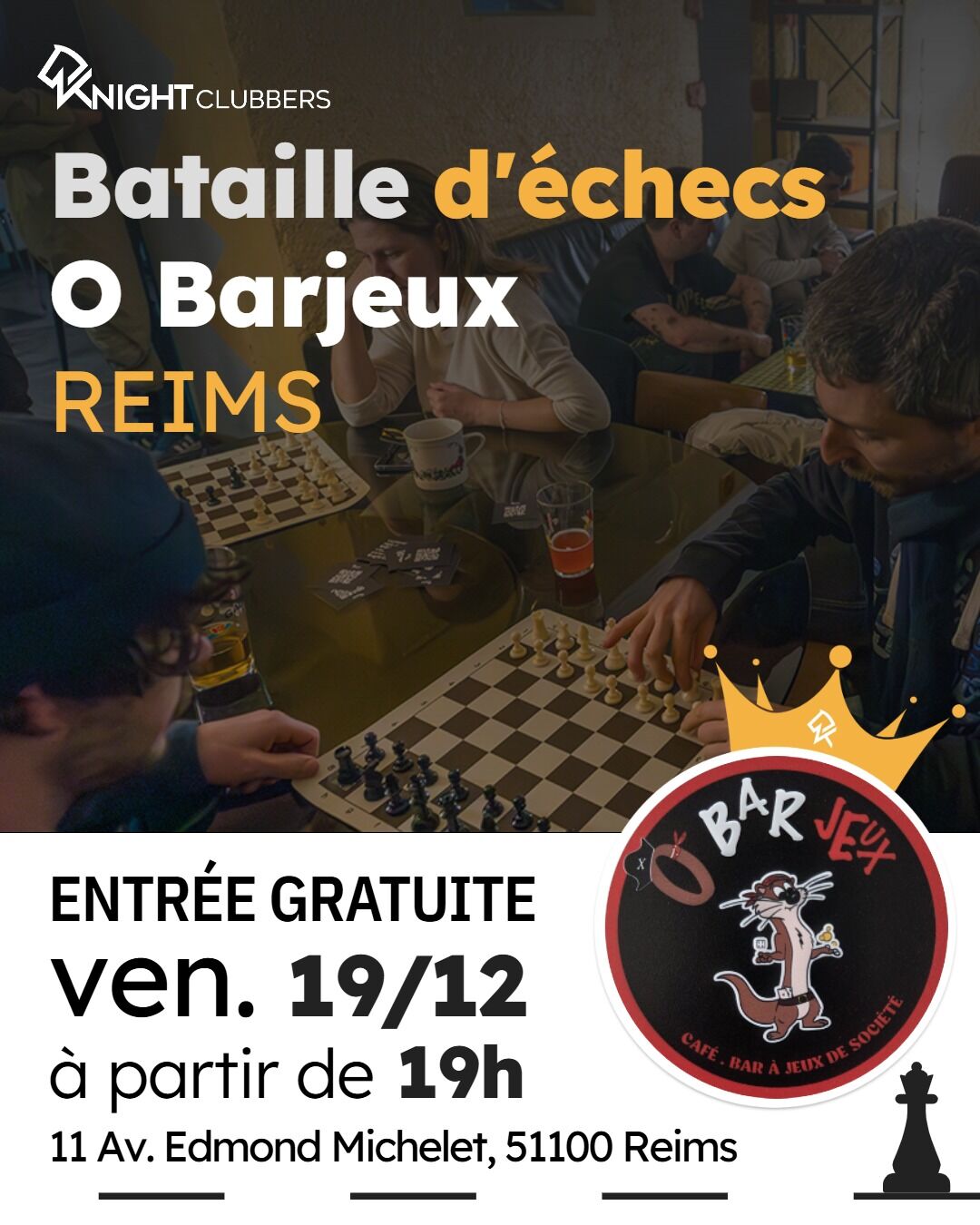 🏰 Rejoins la bataille d’échecs au @o_barjeux by @knight_clubbers! ♟️ Tous niveaux...