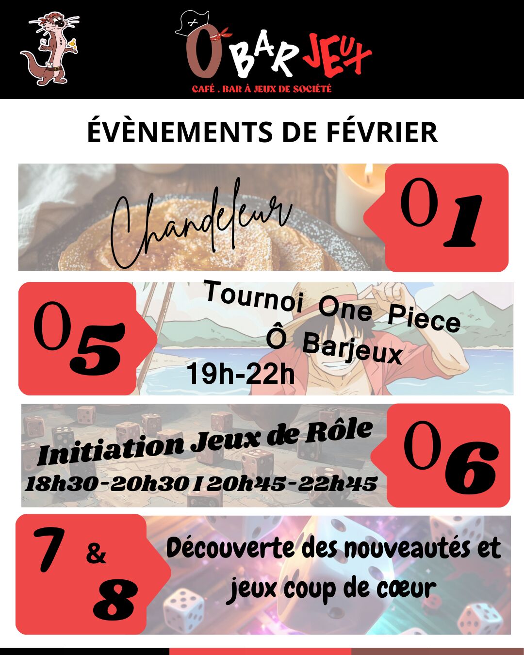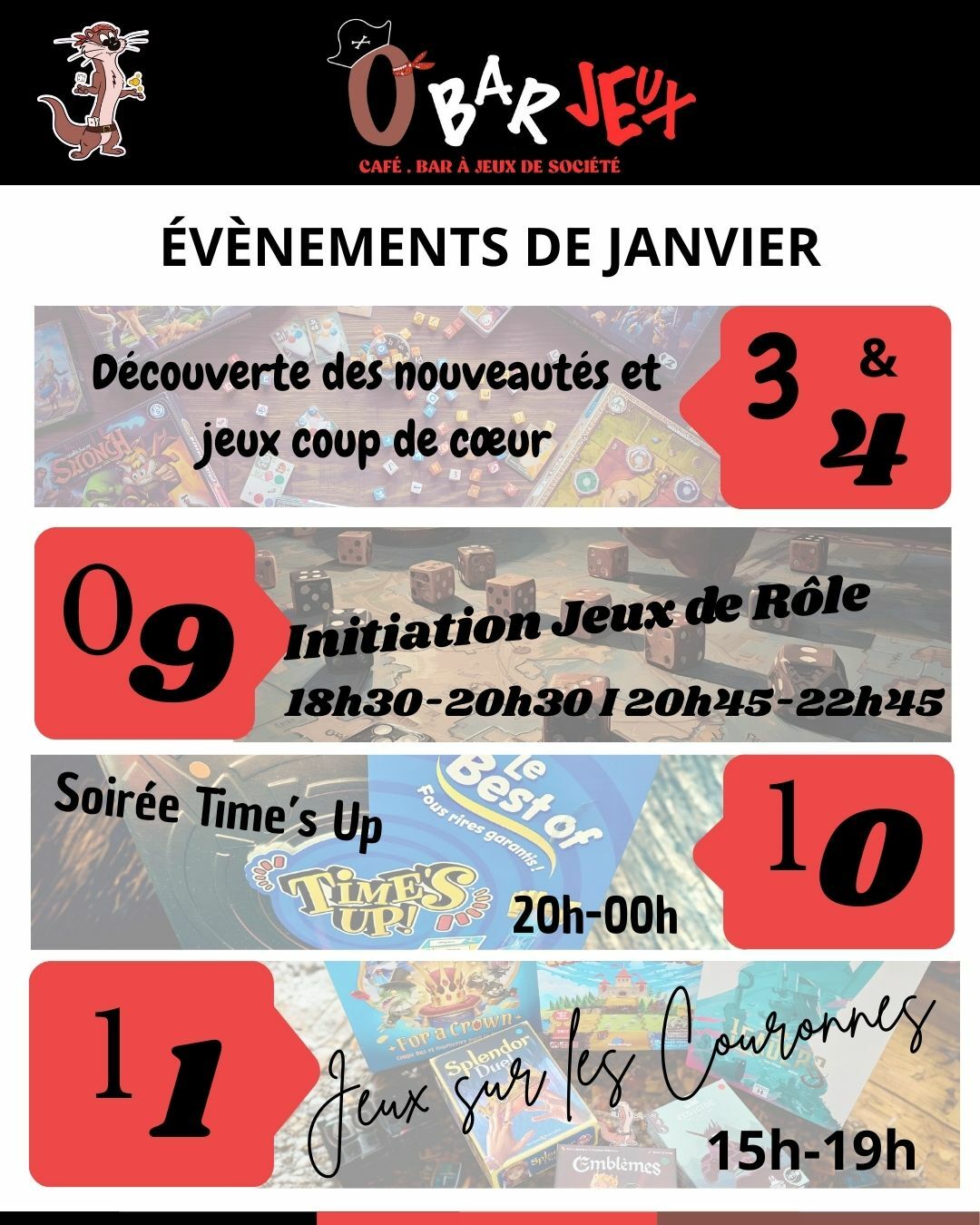 Découvrez nos dernières actualités : organisation des prochaines soirées à thèmes ou tournois, arrivage des nouveautés et top ventes des jeux de société, découverte des boissons locales (bières et softs) de nos partenaires, tous nos conseils sur l'univers des jeux de société et pleins d'autres surprises !